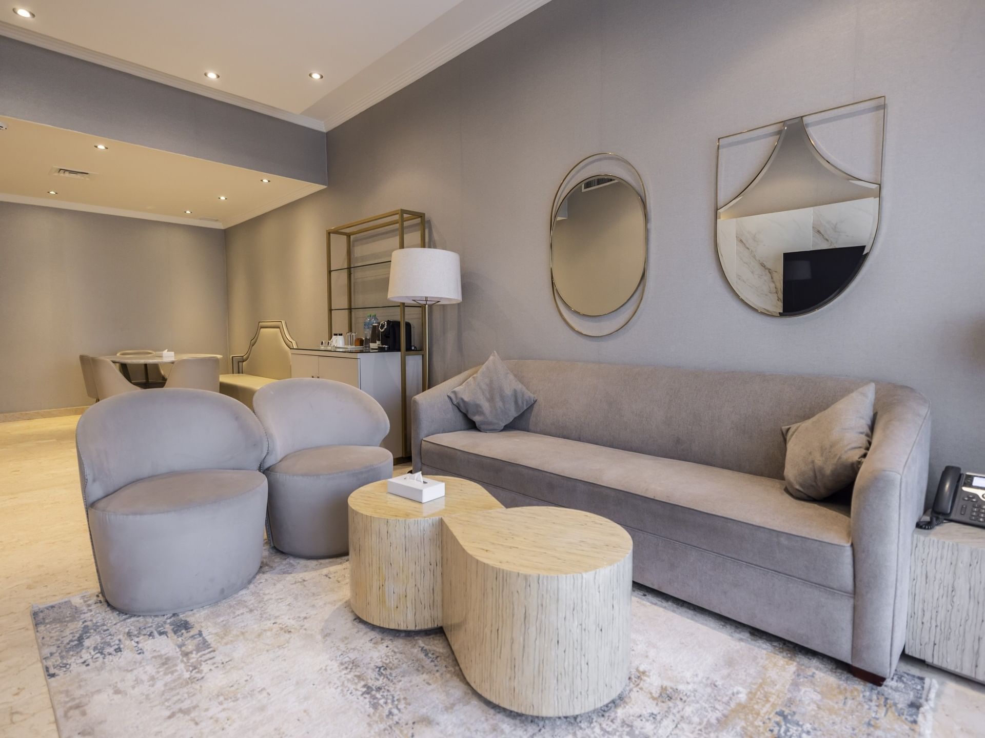 جناح فاخر بمساحة 190 متر مربع مع ثلاث غرف نوم وتصميمات داخلية راقية ووسائل راحة استثنائية لإقامة لا تُنسى.