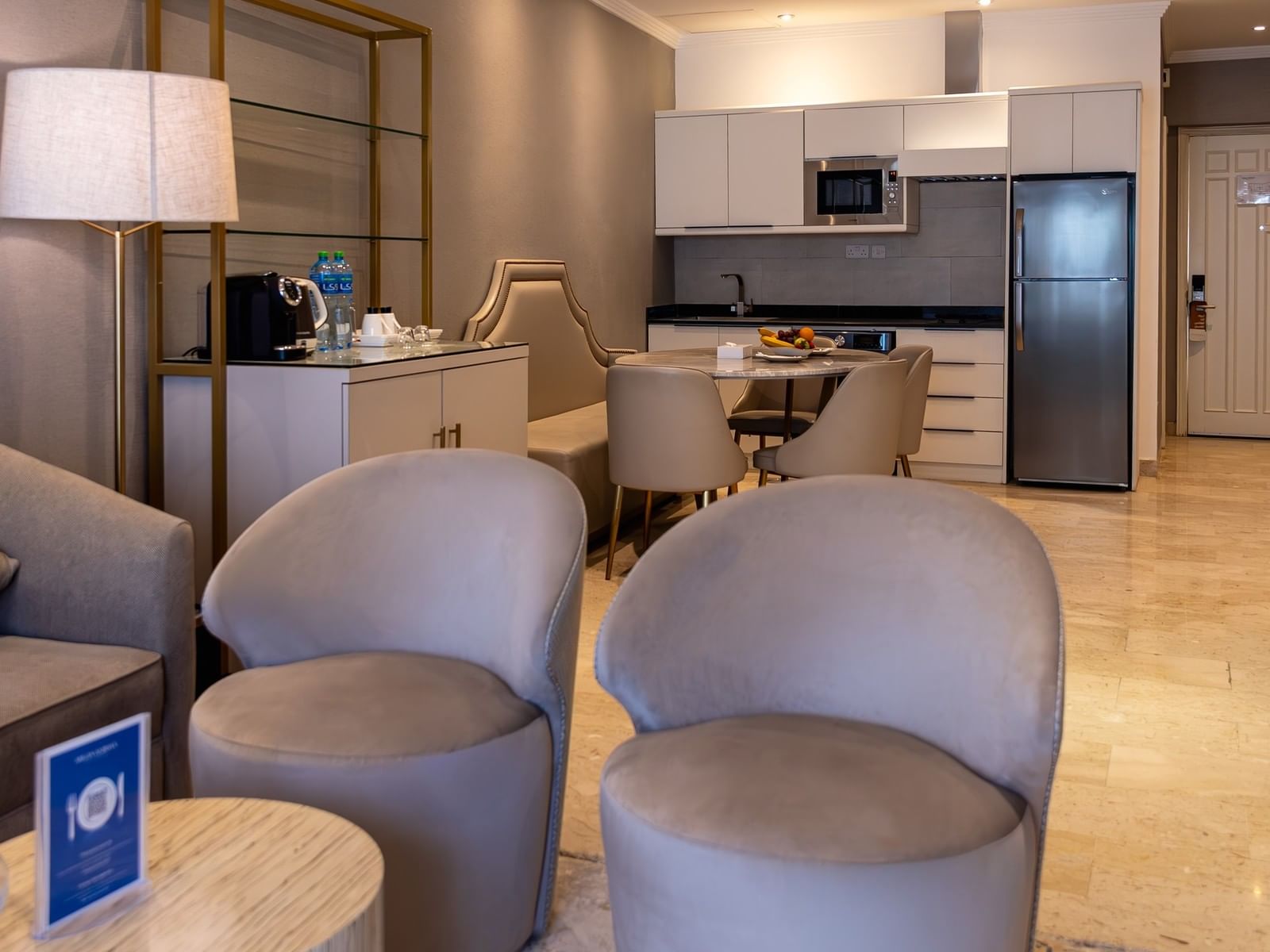 جناح واسع بمساحة 88 مترًا مربعًا يضم غرفتي نوم ويوفر الراحة والملائمة، ويحتوي على منطقة معيشة ومرافق حديثة.