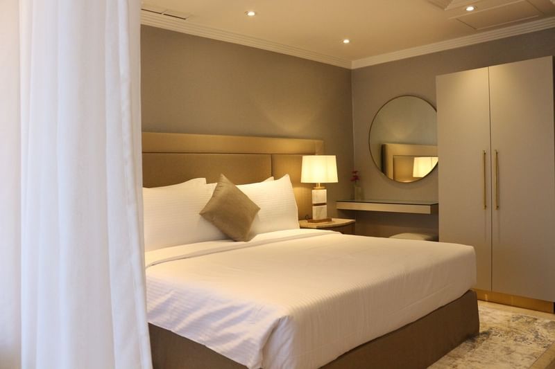 تشمل خيارات الإقامة لدينا أجنحة استوديو وأجنحة عائلية بغرفتين وثلاث وأربع غرف نوم، وهي مثالية للعائلات والإقامات الطويلة والمسافرين من رجال الأعمال. يتميز كل جناح بمناطق معيشة مريحة ووسائل راحة حديثة لضمان إقامة مريحة.